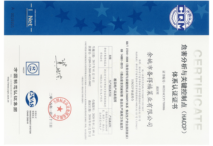 • 廠 名:浙江備得福食品有限公司